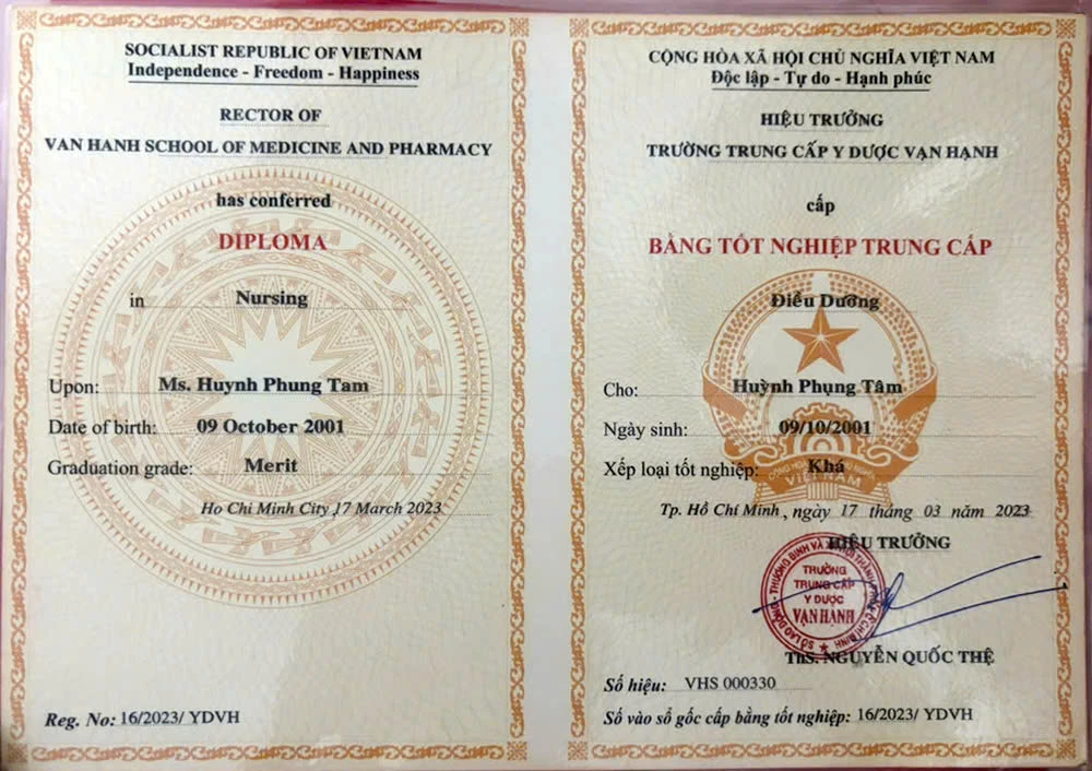 Trung cấp Điều dưỡng Đa khoa – Trường Trung cấp Y Dược Vạn Hạnh.