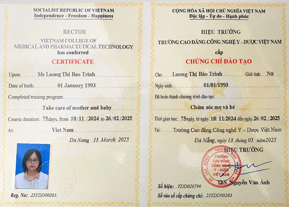Cô Bảo Trinh là điều dưỡng viên của Fagomom với hơn 2 năm kinh nghiệm trong lĩnh vực chăm sóc mẹ và bé tại nhà. Với nền tảng chuyên môn vững vàng cùng phong cách làm việc chu đáo, nhẹ nhàng và tận tâm, cô Trinh luôn mang đến cho gia đình sự an tâm trong những giai đoạn đầu đời của bé.